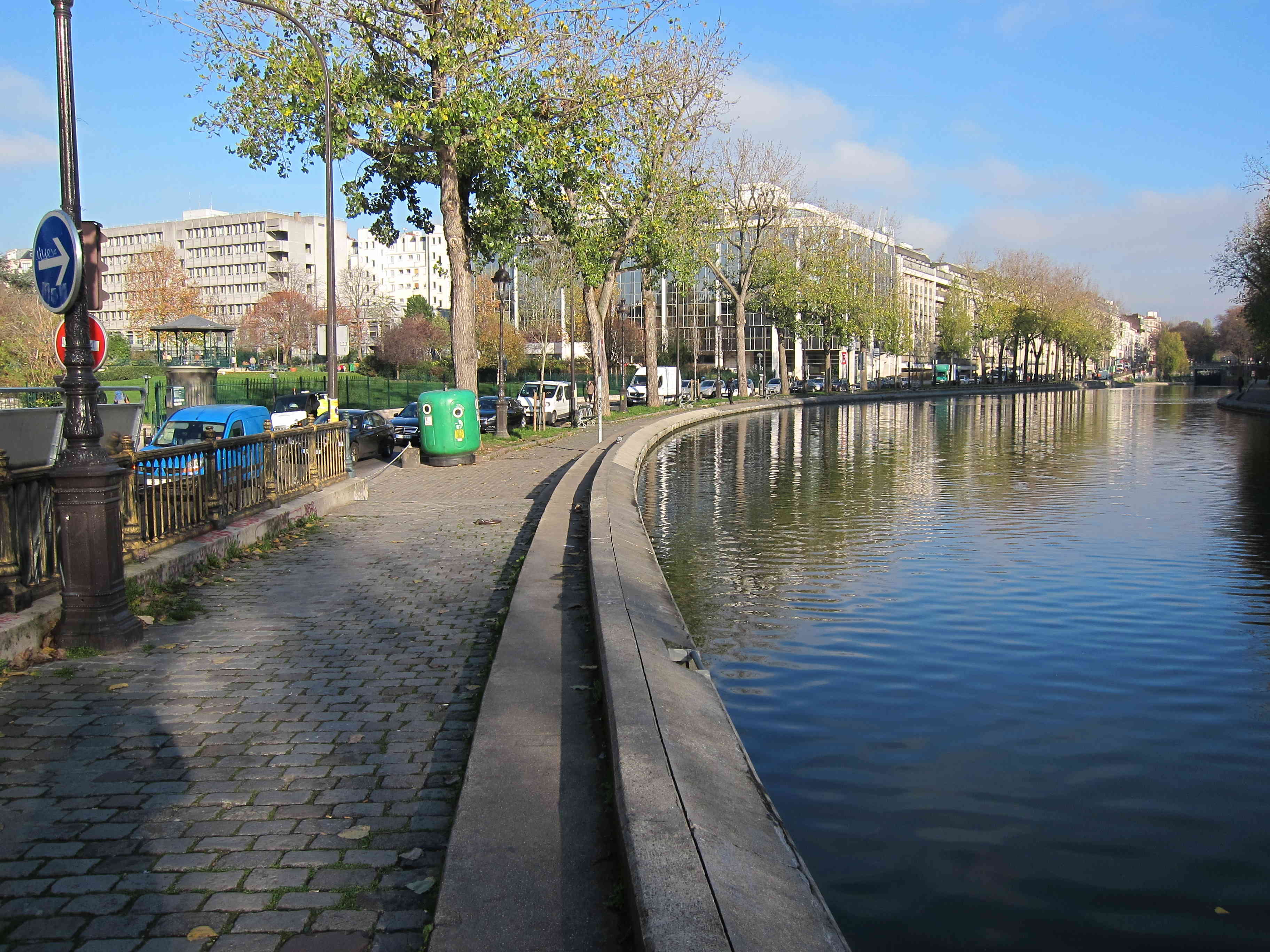 On rejoint le canal par la rue Eugène Varlin. Au carrefour, je découvre un panneau d’information de la mairie qui détaille un « itinéraire balade » le long du canal pour les promeneurs, les patineurs ou les cyclistes. Les dimanches et jours fériés, certaines rues sont fermées à la circulation pour leur laisser la pleine jouissance des berges. Ainsi mon quartier est-il devenu un site de promenade répertorié grâce auquel, selon le slogan officiel, « Paris respire ».