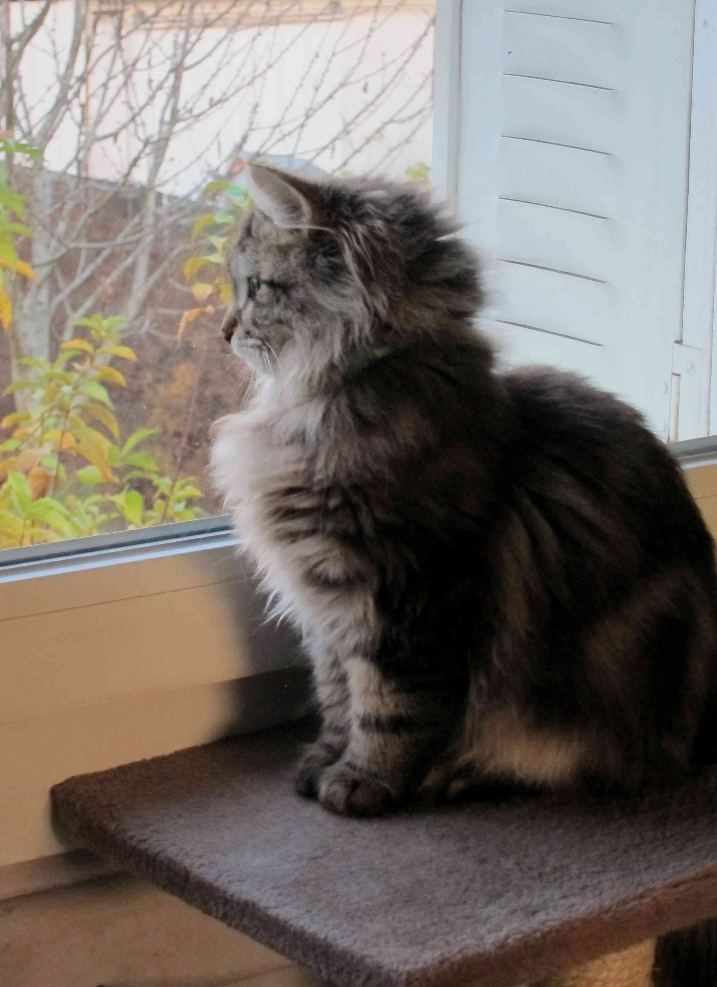 Posté contre la vitre de la fenêtre,